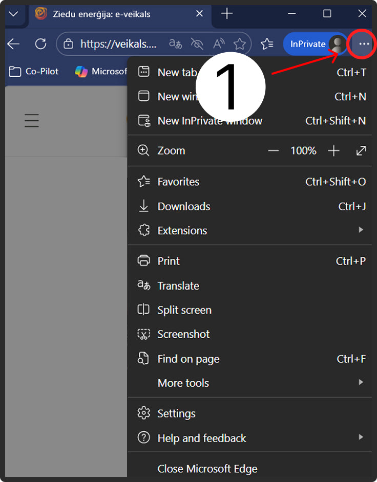 1. Press menu in internet browser (three dots)