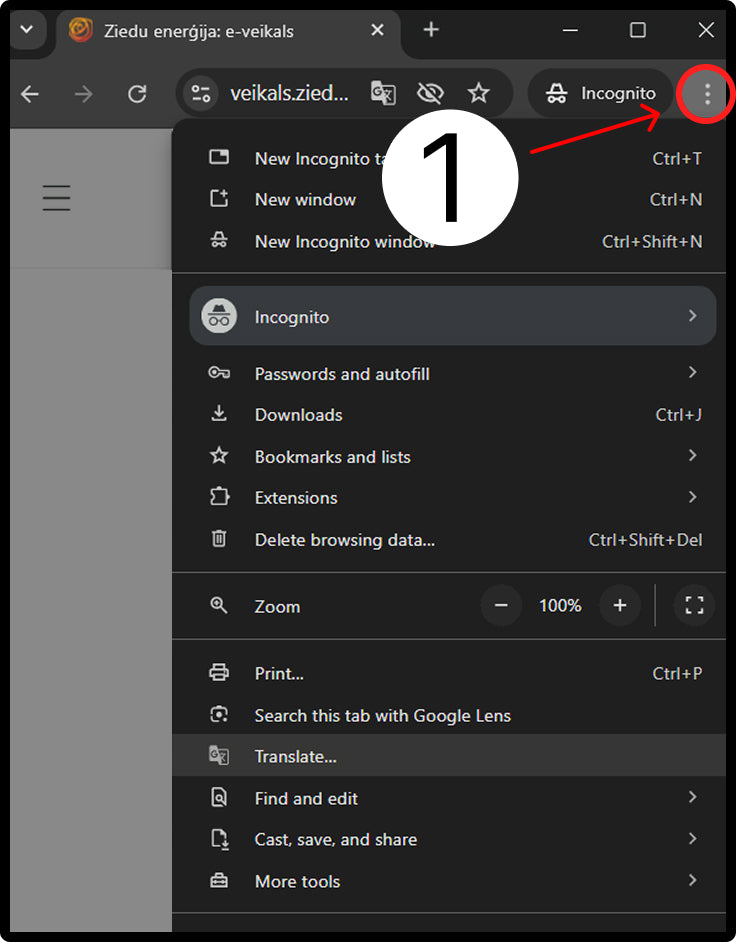 To select another language on our website, please go to the menu in your internet browser (three dots on the upper right side), click Translate and choose your preferred language. Please see instructions below.