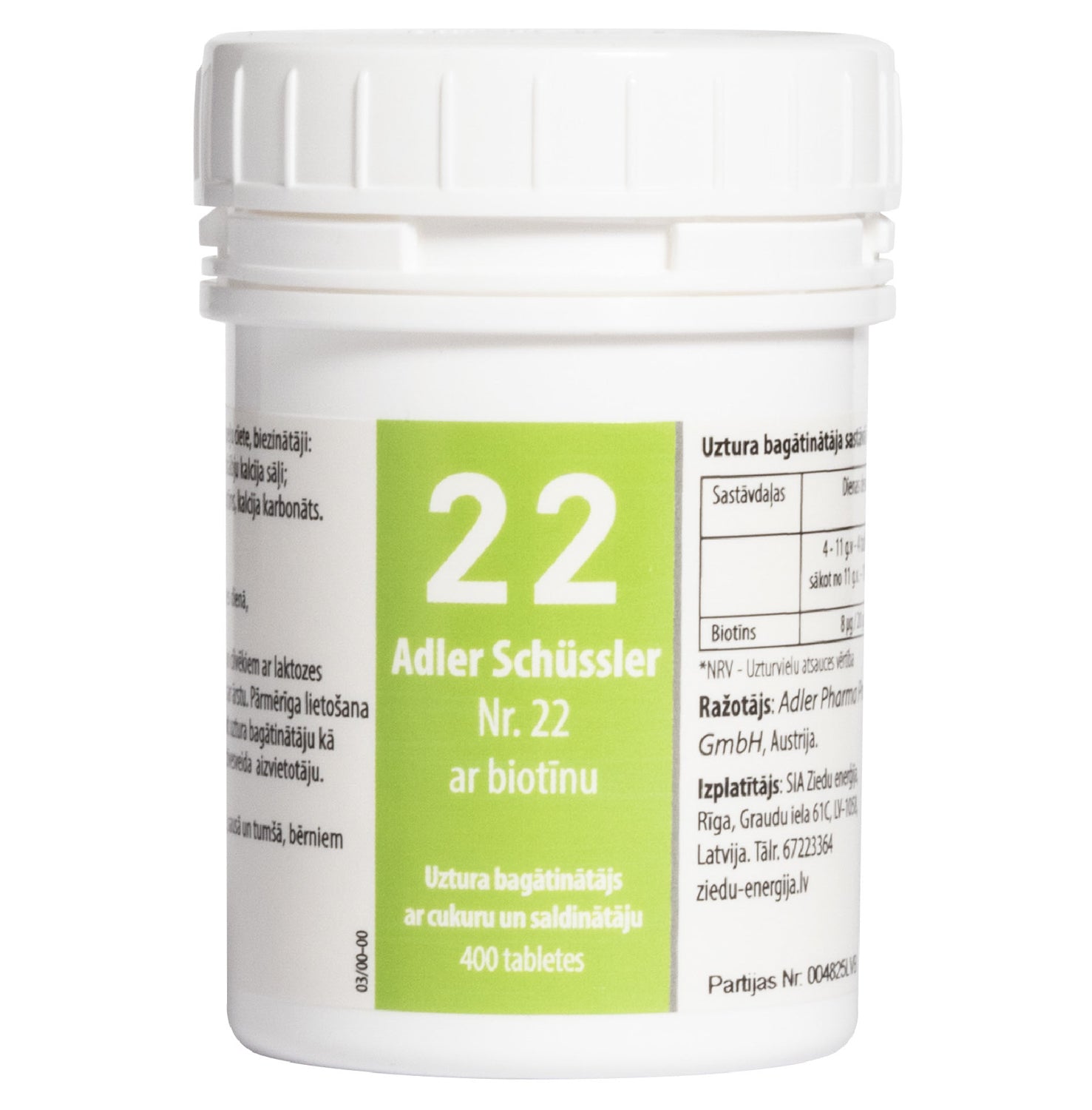 Adler Schüssler Nr. 22 ar biotīnu (kalcija karbonāts), derīgs līdz 02.2030.