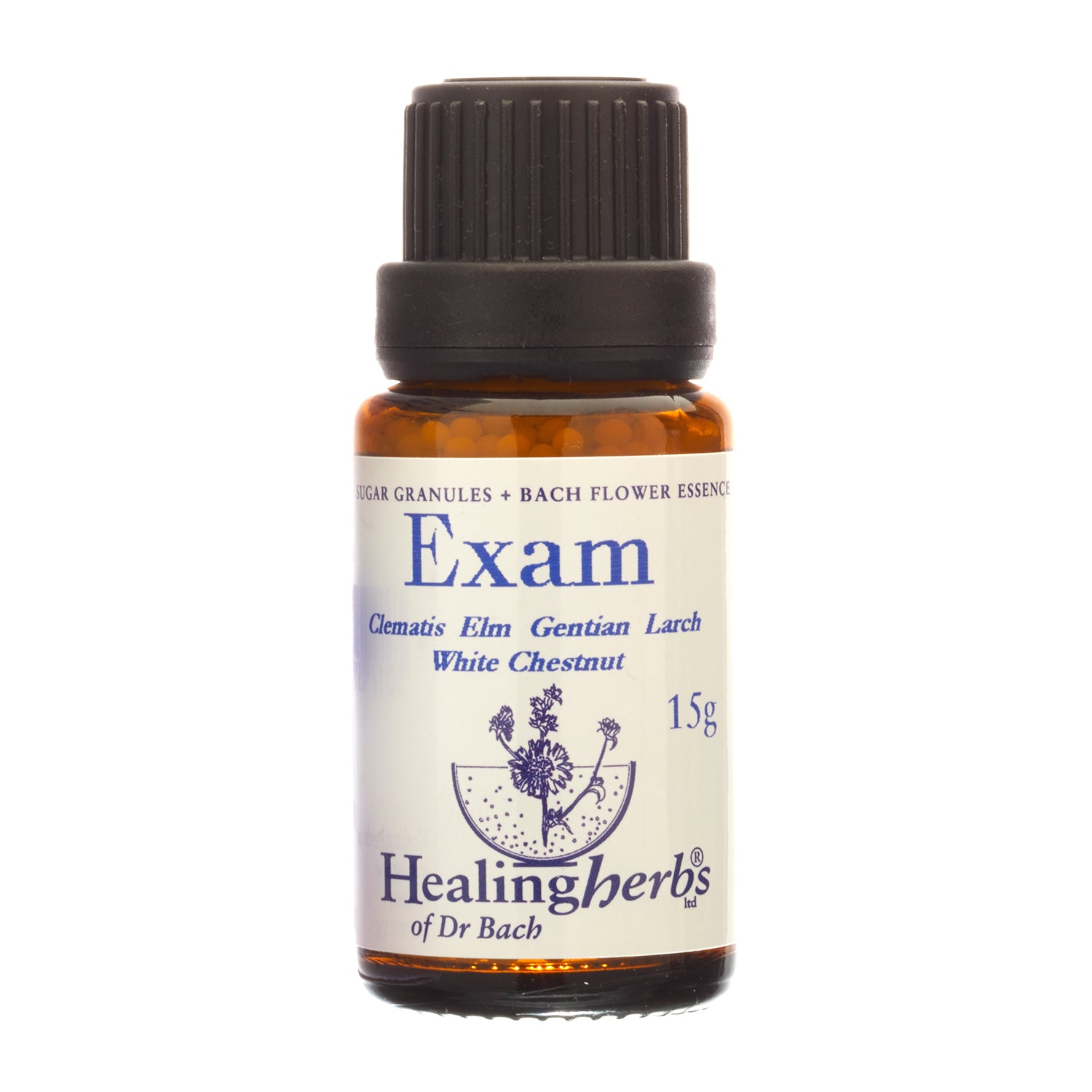 Baha ziedu kombinācija „Eksāmens” palīdzēs jums, gatavojoties eksāmeniem un visa veida pārbaudījumiem, kā arī eksāmenu un pārbaudījumu laikā – būsiet uzmanīgs/a, pašpaļāvīgs/a, ar labām koncentrēšanās spējām: mežvītenis un parastā zirgkastaņa (palīdzēs sakoncentrēt domas, goba (palīdzēs nenolaist rokas un tikt galā uzdoto, drudzenīte – palīdzēs nezaudēt drosmi, lapegle – cels jūsu pašapziņu.