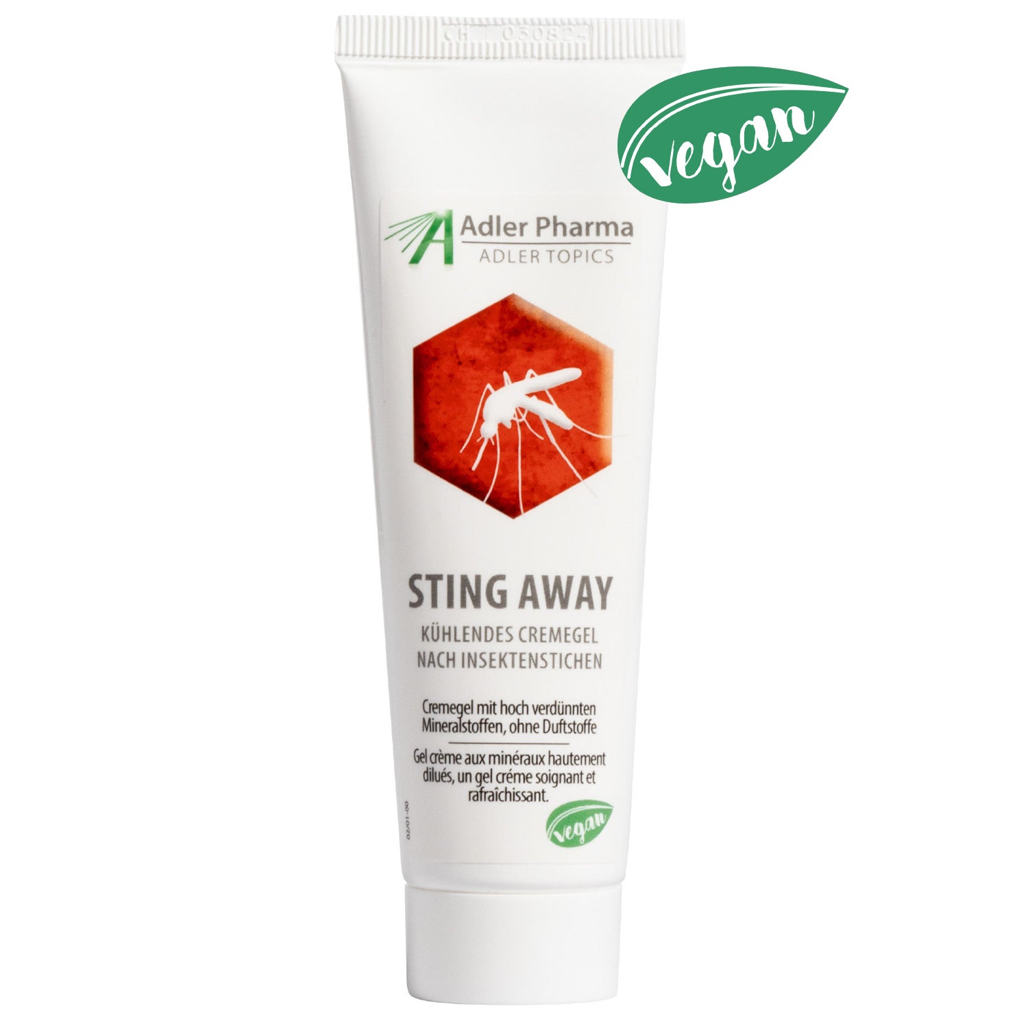 Dermatoloģiski pārbaudīts. 95% lietotāju apstiprina krēma Sting Away nomierinošo iedarbību (Avots: „Anwendungstechnische Qualitätsprüfung eines hautberuhigenden Cremegels“, Prüfbericht 17-0658-01, SGS Institut Fresenius Austria GmbH)